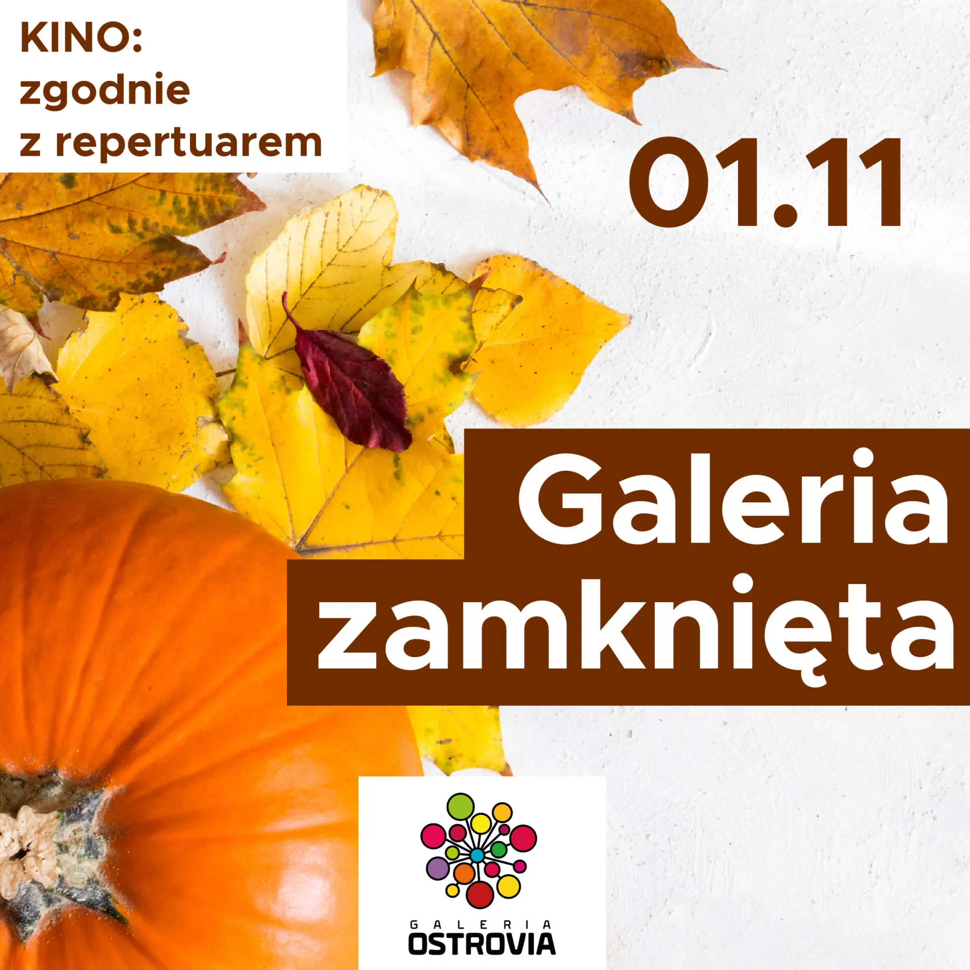 informujemy, że w dniu 1 listopada (Wszystkich Świętych) Galeria Ostrovia będzie nieczynna.