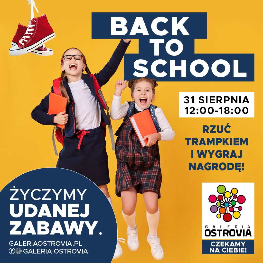 Już 31 sierpnia w godzinach 12:00-18:00 w Galerii Ostrovia startuje wyjatkowy Back to school. Czeka na Was niecodzienne wyzwanie – zrób zakupy, rzuć trampkiem, zawieś go na drążku i odbierz wyprawkę szkolną.