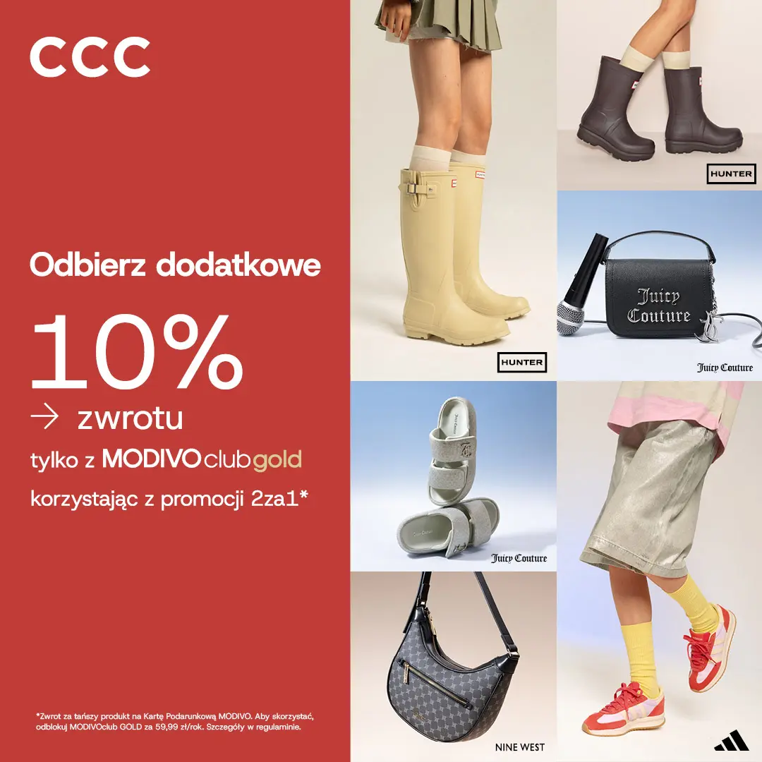 W CCC lato nabiera tempa – i to nie tylko w trendach. Dzięki MODIVOclub GOLD zyskujesz 10% cashbacku na Kartę Podarunkową MODIVO przy każdych zakupach. A jeśli skorzystasz z promocji 2za1, zyskasz dodatkowy zwrot za drugi tańszy produkt! Takie okazje sprawiają, że modowe wybory stają się jeszcze lepsze!